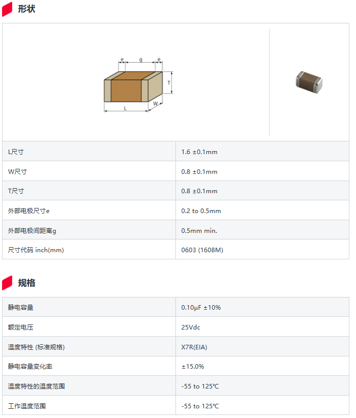 村田GRM188R71E104KA01D贴片电容基本参数: