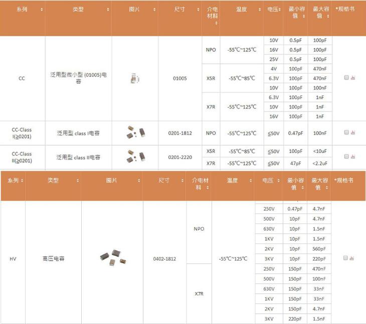 贴片电容耐压值对照表,电容电阻是我们在线路板电路中常见的元器件,由于贴片电容的体积小很多参数是无法展现在外壳上的,因此只能靠对照官方的型号参数查看,或者使用万用表测量。贴片电容耐压及额定电压规格有:4V、6.3V、10V、16V、25V、35V、50V、100V、250V、500V等,今天我们一起来了解一下贴片电容耐压值。